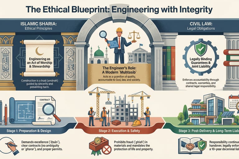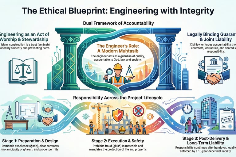A 4-year PhD summary: This practical guide merges modern engineering with the Qur'an and Sunnah. An ethical framework for design, construction management, and sustainability.